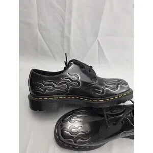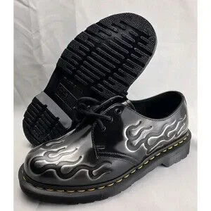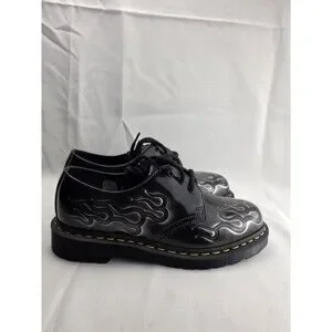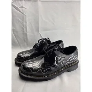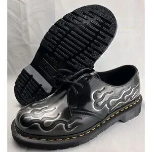 Dr. Martens 1461 INFERNO Arcadia 3-Eye Shoes Black Silver Flames Unisex Sz US 8