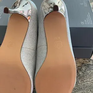 I. Miller Silver Sparkle Low Heeled Formal Prom Bridal Open Toe Shoes 8.5Was. Display shoe