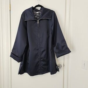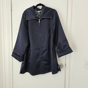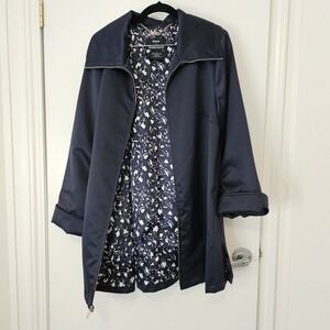 Dennis By Dennis Basso Navy Blue Coat Jacket L Zip Front Lined Springtime Jacket