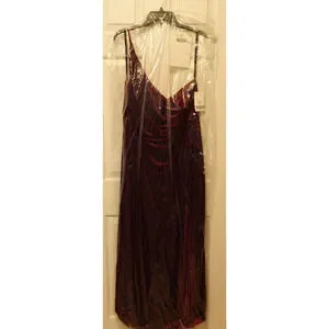 AFTER SIX 1556 SIZE 14 ONE-SHOULDER VELVET MAXI DRESS POCKETS CABERNET RED NEW