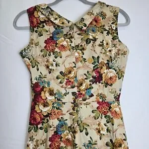 Retro, vintage inspired, flowers, rockabilly, pinup, 50s, cottage, cottagecore, boho, bohemian, feminine, casual, chic, fitted waist, botanical, summer, spring, tan