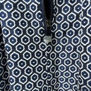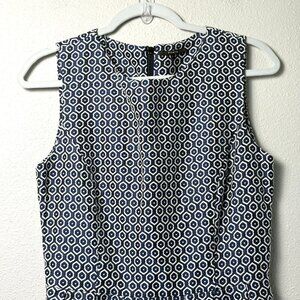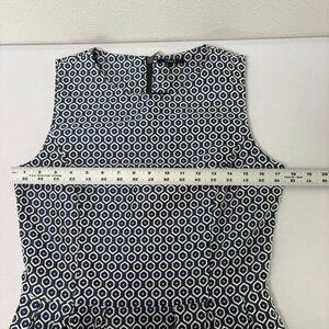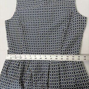 FRNCH Fit & Flare Dress Size L Blue White Geometric Sleeveless Lined Mini
