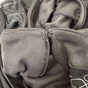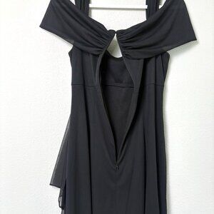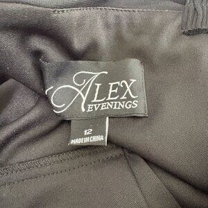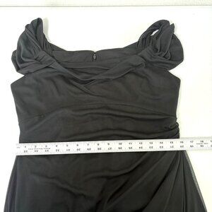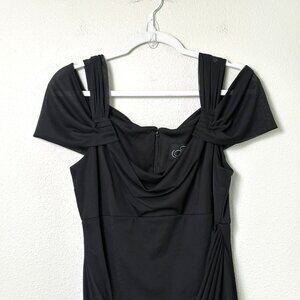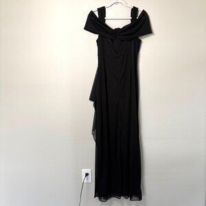 Alex Evenings Draped Cold Shoulder Long Evening Gown Size 12 Black Ruched Dress