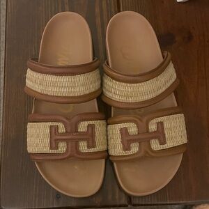 Sam Edelman Rowan Tan Raffia & Leather Slide Sandals
