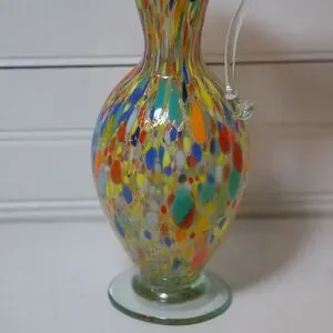 Vintage Carnival Pitcher Hurricane glass small vase handle Speckled Confetti