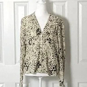 ZARA Woman's Long Sleeve Button Down Top Blouse Size M Cream Black Print