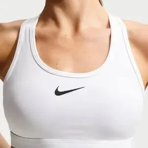 Nike Swoosh Plus Size Bra, a medium-support sports bra designed specifically for plus-size athletes. It features Nike's Dri-FIT technology, which wicks away sweat to keep you dry and comfortable during workouts like spin, cardio, and dance classes.