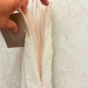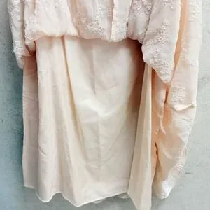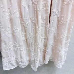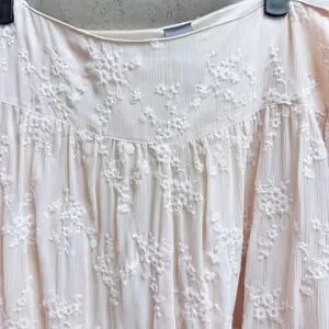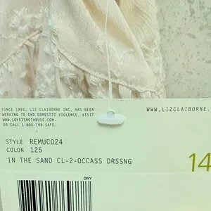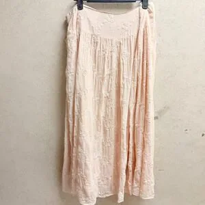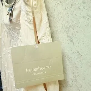 Graceful movement defines this captivating Liz Claiborne long skirt. Float through your day with the airy, crinkled fabric that cascades into elegant pleats. Intricate floral embroidery blooms across the entire piece, adding a touch of delicate artistry and feminine charm. The subtle beige hue offers a versatile canvas for countless styling possibilities, while the flowing silhouette promises comfort and effortless sophistication. Perfect for a garden party, a leisurely brunch, or a romantic evening out. Size 14, New with tags, Please refer to picture for small red mark on waistline. Light weight, Lined