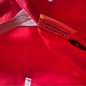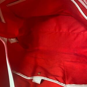 Interior: Typically features a red lining, one zippered pocket, multiple slip pockets, and a built-in key leash.