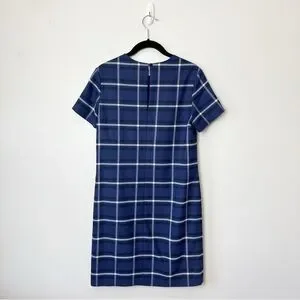 Banana Republic Plaid Shift Dress Blue White Short Sleeve Office Career Work