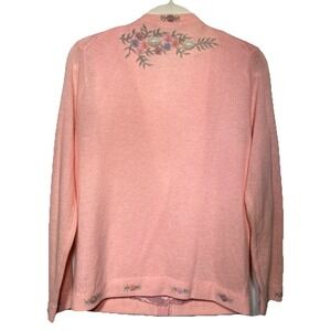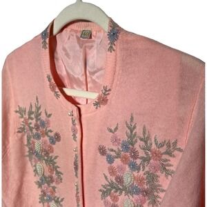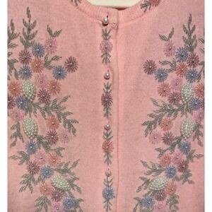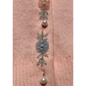 VTG 50's Floral Beaded Cardigan Sweater Pink Faux Pearl UK Sz 40 (10-12 US) EUC