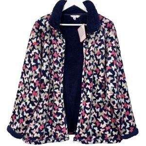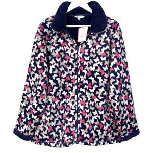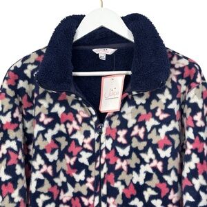 Julipa Butterfly Fleece Navy Blue Pink Jacket Women's Size 16 NWT