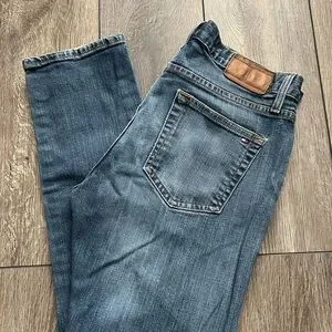 Experience the timeless appeal of Tommy Hilfiger's straight-leg jeans, crafted in a classic blue shade with natural fading for a relaxed, worn-in style. The denim's subtle variations and traditional cotton texture make these jeans a versatile choice for everyday wear.