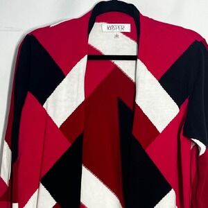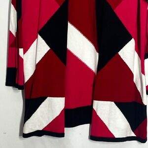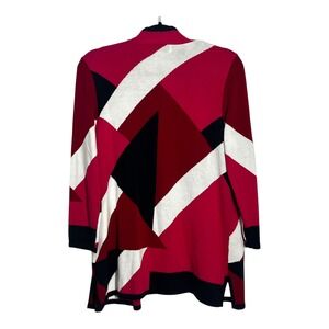 Kasper Womens Geometric Colorblock Open Front Cardigan Red Black White Small