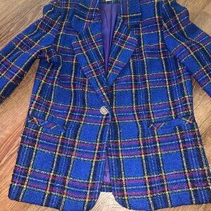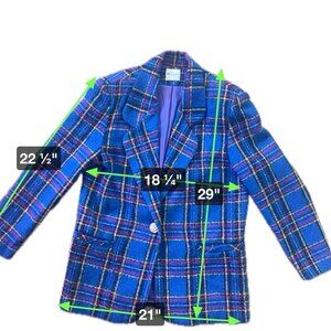 Vintage JR Bentley Blue Purple Plaide Blazer Wool Blend Size Medium one button