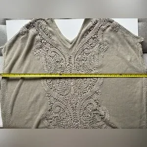 Inches Elegant beige tunic dress with intricate crochet design. Perfect for casual outings.