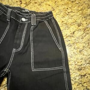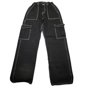 Fashion Nova Cargo Pants Womens 5 Black Utility Baggy Contrast Stitch Streetwear