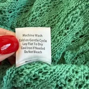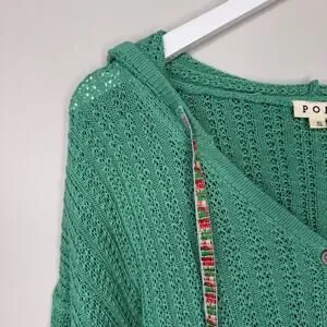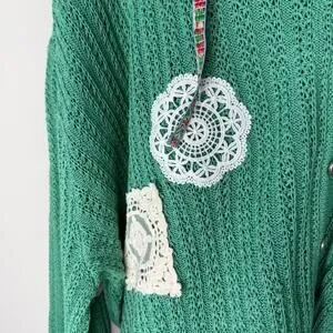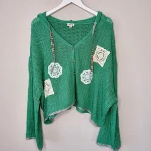 POL Green Crochet Patchwork Knit Hooded Cardigan Granny Size Small Oversized