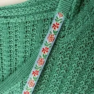 Green with white and cream crochet patchwork detail