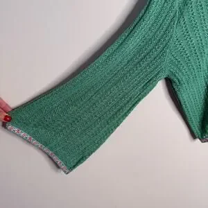 POL | Green Crochet Patchwork Knit Hooded Cardigan Granny Size Small Oversized
