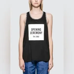 Opening Ceremony Unisex BOX LOGO MESH TANK, black and white size M