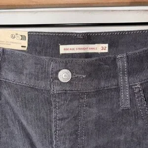 NWT Levi’s Ribcage Straight Ankle Corduroy Pants Gray Women’s Size 32 x 27