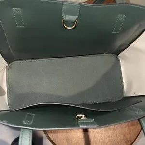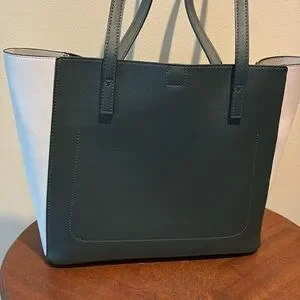 Lovevook color block tote Small tote Saffiano Hunter Green grey cream NWOT
