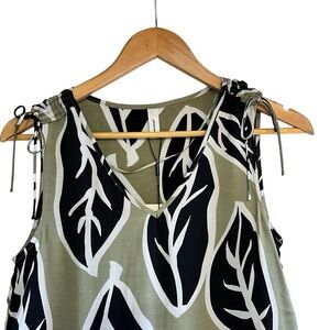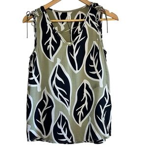 This is a Soyaconcept satin leaf print sleeveless top with shoulder ties. It’s got a v-neck and it’s lightweight and flowy. It’s a size XS and new with tags.