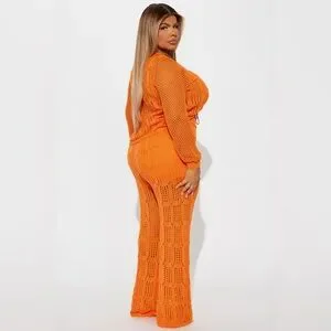 NWT. Stylish orange open-knit pants paired with a matching drawstring top. Lightweight, breathable knit for warm-weather wear. Flattering elastic waist with a relaxed wide-leg silhouette. Vibrant orange color adds bold, on-trend appeal.