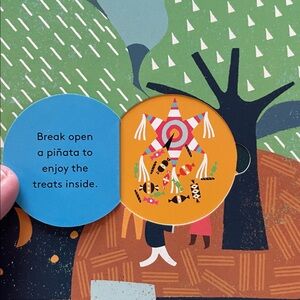 Colorful illustrated holiday picture book. Festive scenes with a large green Christmas tree and multicultural city illustration. Cheerful, holiday design. An advent calendar flap book. In great condition, broken at the spine a little, no structural damage just the surface.