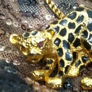 GOLD TONE LEOPARD BLACK ENAMELING...JEWELED EYES