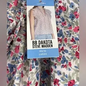 BB Dakota by Steve Madden Floral Ruffle Cap-Sleeve Top size large