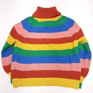Womens Rainbow Striped Knit Sweater Long Sleeve Turtle Neck