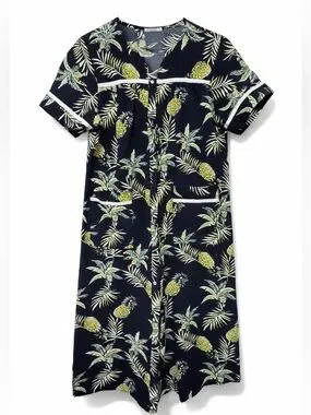Ekouaer Tropical Pineapple House Dress Muumuu Snap Front Pockets Cotton Small