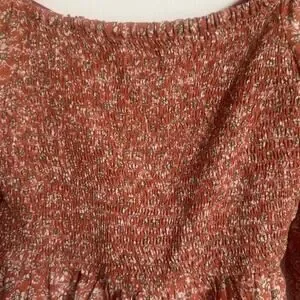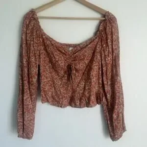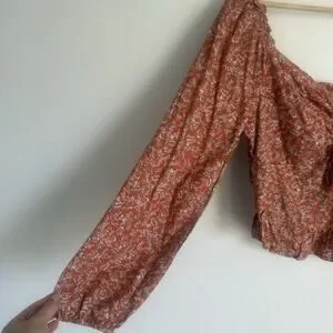 JAPNA Rust Fall Floral Smocked Peasant Top Long Sleeve Boho Square Neck NWOT M