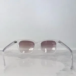 Like new condition sunglasses. Super lightweight and flattering with the translucent frames. These are replacement lenses in the frames hence no Ray-Ban logo on the lens itself. No case but I’ll send them with a drawstring shammy bag (shown). Current model on the website for $194!