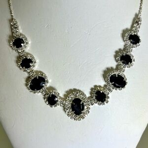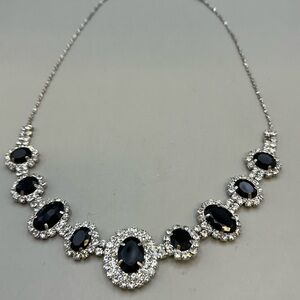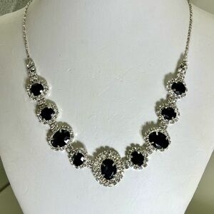 This exquisite necklace showcases a harmonious blend of black and silver crystals, featuring a classic design that exudes elegance. The necklace is crafted with meticulous attention to detail, highlighting its refined metalwork and sophisticated style. Perfect for special occasions, this piece adds a touch of timeless beauty to any ensemble.