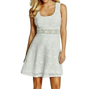 Guess White Lace Crochet Back Cut Out Criss Cross Alameda Mini Dress size 8