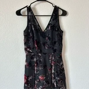 White House Black Market Black Floral Velvet 90s Inspired Formal Midi Dress