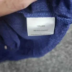 Embrace effortless elegance with this Eileen Fisher Woman linen top, featuring a sophisticated V-neckline and a shimmering sequin-embellished front. The lightweight, breathable linen fabric offers a relaxed yet refined silhouette, perfect for layering or wearing on its own during warmer days. The subtle metallic accents add a touch of glamour to the rich blue hue, making it a versatile piece for both casual outings and evening gatherings. This garment is in very good pre-owned condition, showing minimal signs of wear.