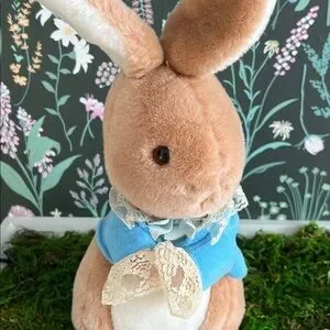 Perfect for the Spring & Easter season, Beatrix Potter’s Peter Rabbit wearing his iconic blue shirt, featuring lace trim on the collar and wrists. In otherwise absolutely WONDERFUL vintage condition!! (small faint stain on the back of the coat) such a soft & snuggly piece of nostalgia!! 🫶✨