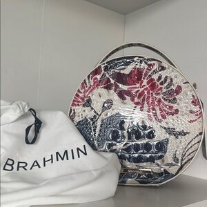 Beautiful Brahmin round statement bag, elegant design, with neutral colors to wear with any outfit.
