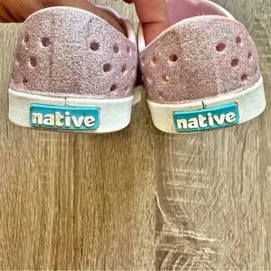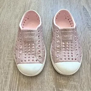 Toddler girls Native pink bling slip-on shoes size 7 in great pre-owned condition. Adorable pink, glittery shoes; perfect spring and summer shoes for any girl.