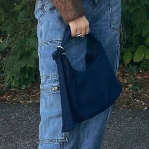 NWT Baggu Mini Nylon Shoulder Bag in Navy Blue Slouchy with Adjustable Strap
