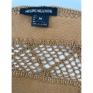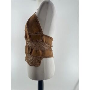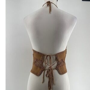Vintage Misdemeanor Halter Top Womens Medium Tan Leather Crochet Lace Up Back Festival Western Boho
