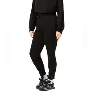 NWT Lacoste Womens Organic Cotton Jogger Sweatpants Black/Green Detail Orig $160