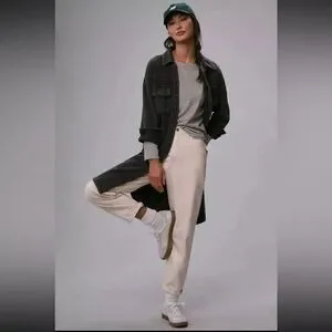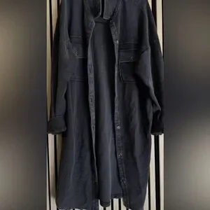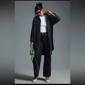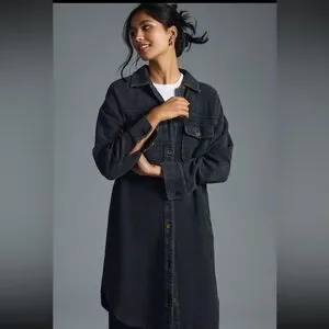 PILCRO Anthropologie Ribbed Button Down Duster Shacket in Gray Black Size XL