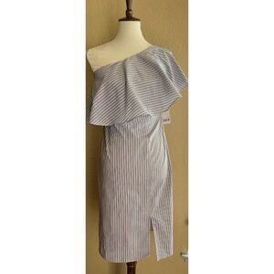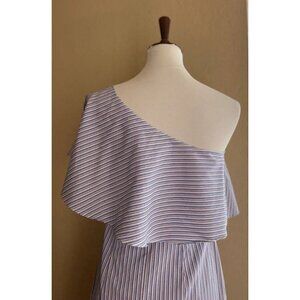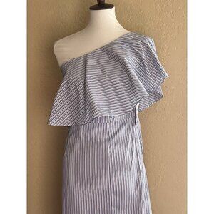 BAR III $80 Blue Striped Ruffled Slitted Dress One Shoulder Cotton Size S