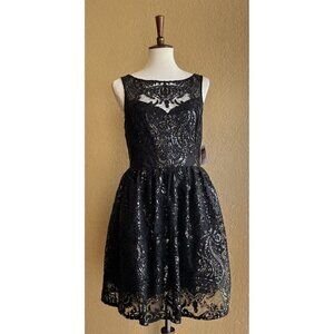 BB Dakota Tate Sequin Lace Fit And Flare Dress Black Size 8 A19