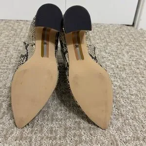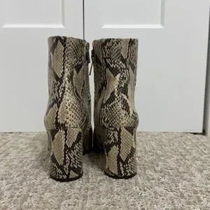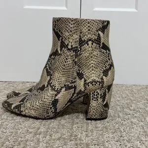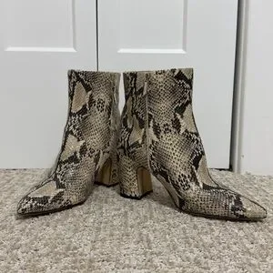 • Style: Snakeskin pointed‑toe block‑heel ankle boots